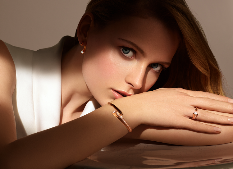 Each piece in this collection captures a wave of movement in white and rose gold. Choose from an array of rings, pendants, bangles, bracelets and earrings to find your perfect expression.